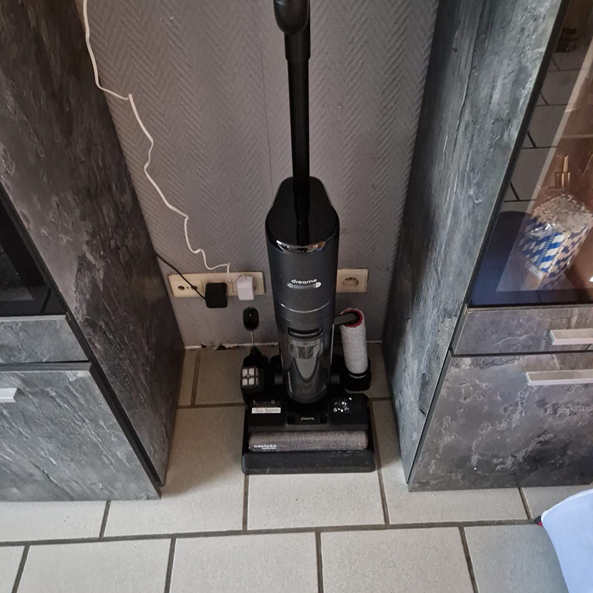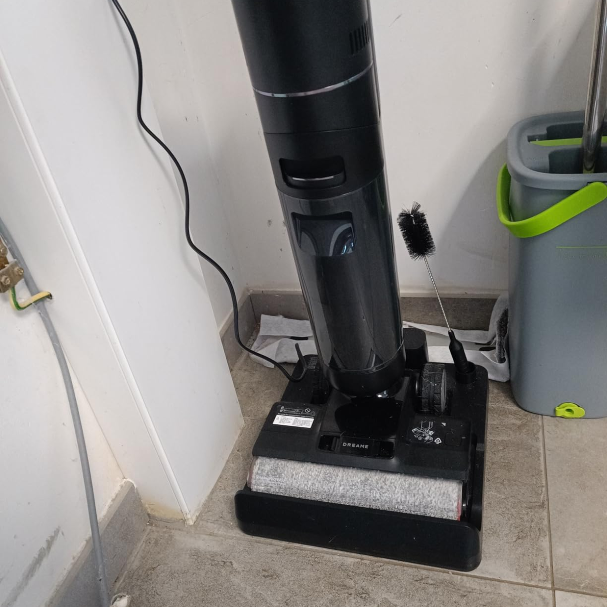 se recarga automáticamente, lava su rodillo con agua limpia y queda lista para la siguiente ronda.Sin cables, sin enredos, sin mantenimiento. Solo colócala en la base, presiona un botón y deja que se prepare sola.