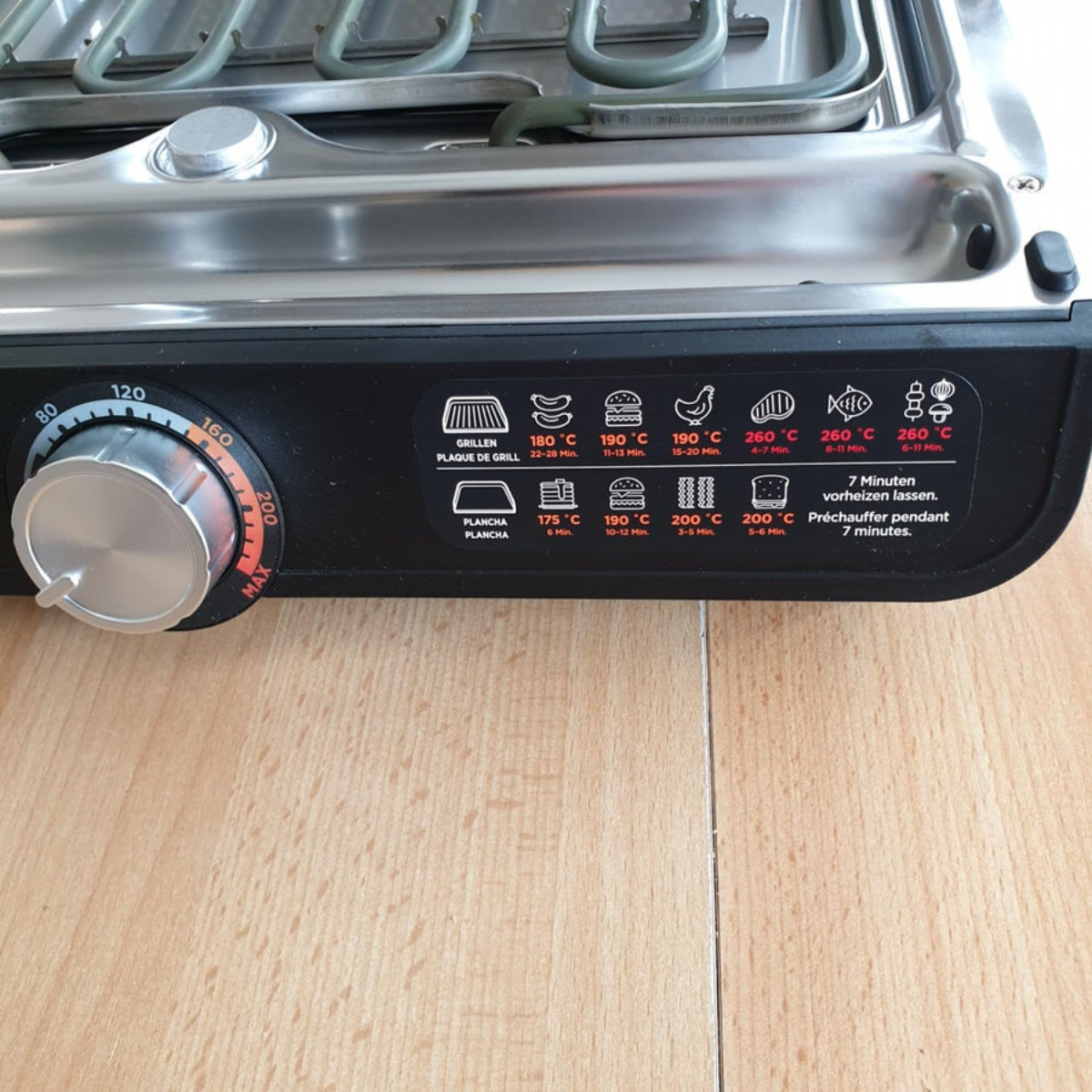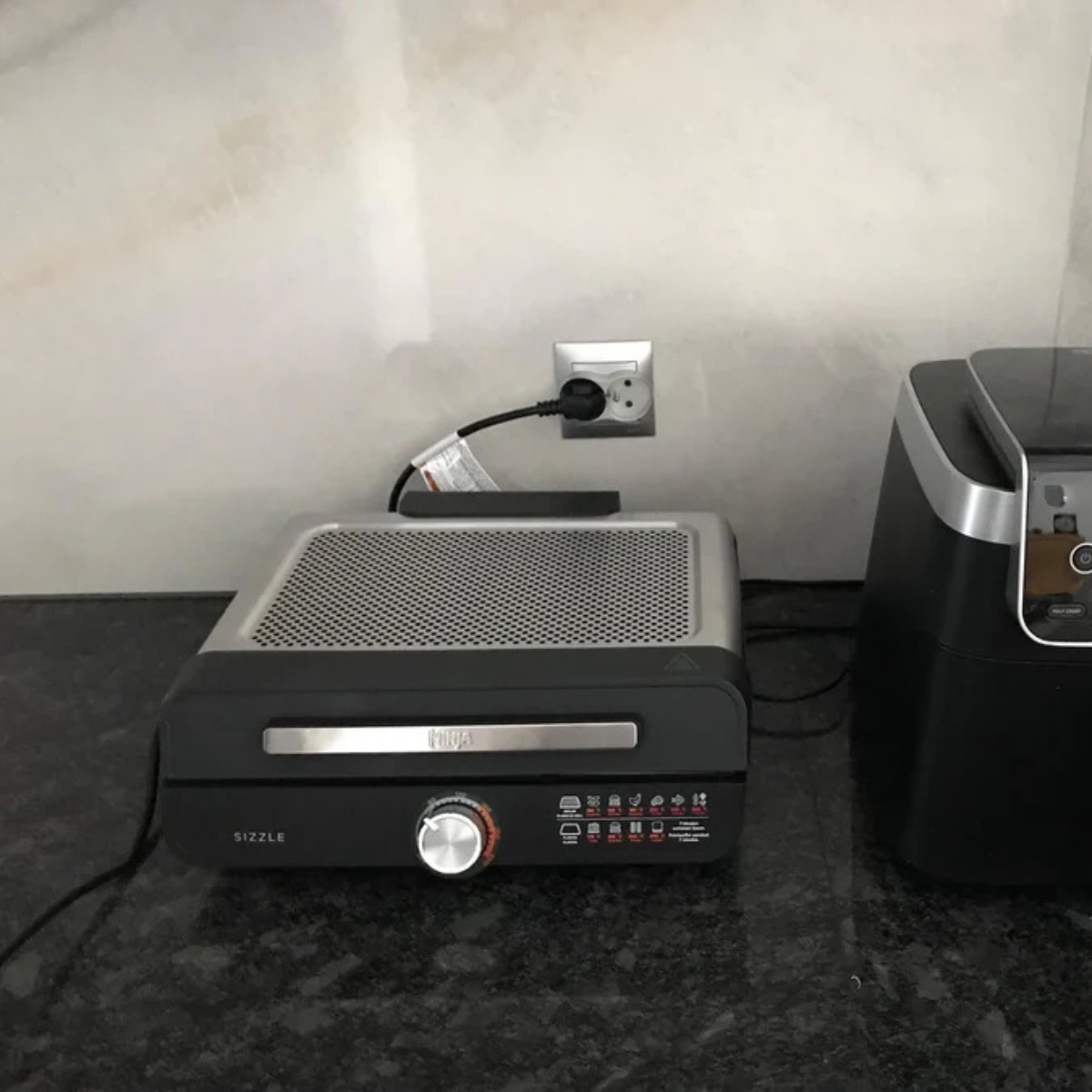 La combinación de alta temperatura, placas intercambiables y distribución uniforme del calor te permite cocinar rápido, rico y con menos humo, sin tener que usar múltiples sartenes u ocupar toda la estufa.