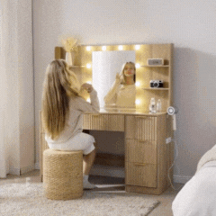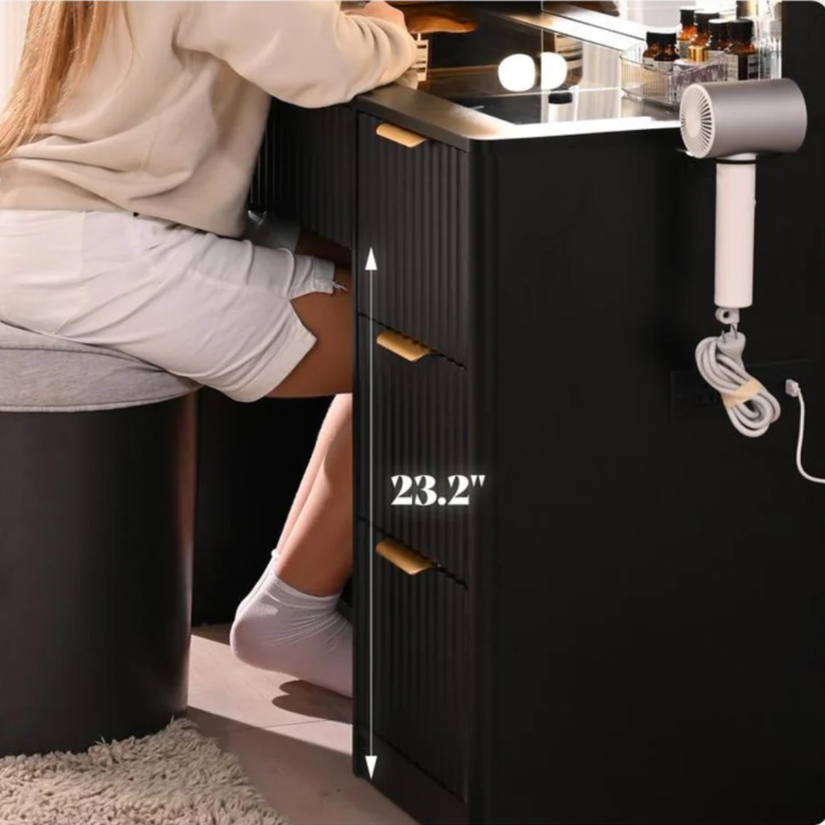 Sentarte frente a tu GlowDesk ya no implica apretarte ni sentirte incómoda. Su estructura está pensada para que tus piernas tengan el espacio que necesitan, permitiéndote moverte con libertad mientras te maquillas o te peinas.